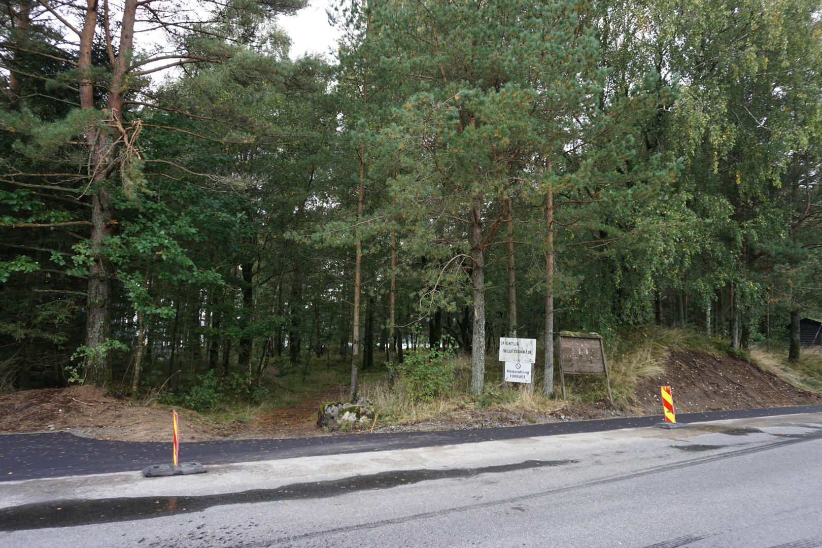 Ny handikap parkering til venstre for stien og utvidet veiskulder (til høyre) bort til toaletter